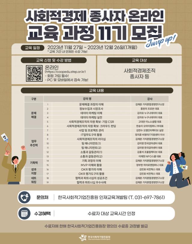 [모집] (한국사회적기업진흥원) 사회적경제 종사자 역량강화 온라인 교육 과정 11기 모집 (~12.26)