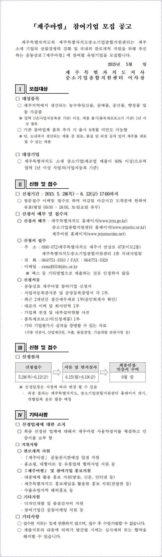 제주도 공동상표 『제주마씸』에 참여할 유망기업을 모집하고 있습니다.