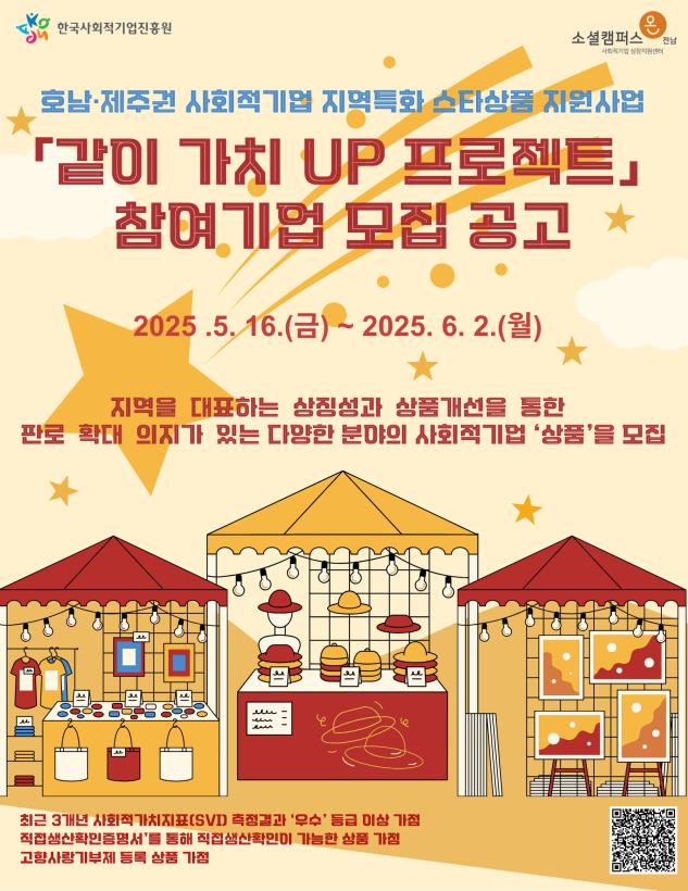[광주·전라·제주] 사회적기업 지역특화 스타상품 지원사업 「같이 가치 UP 프로젝트」 참여기업 모집 공고