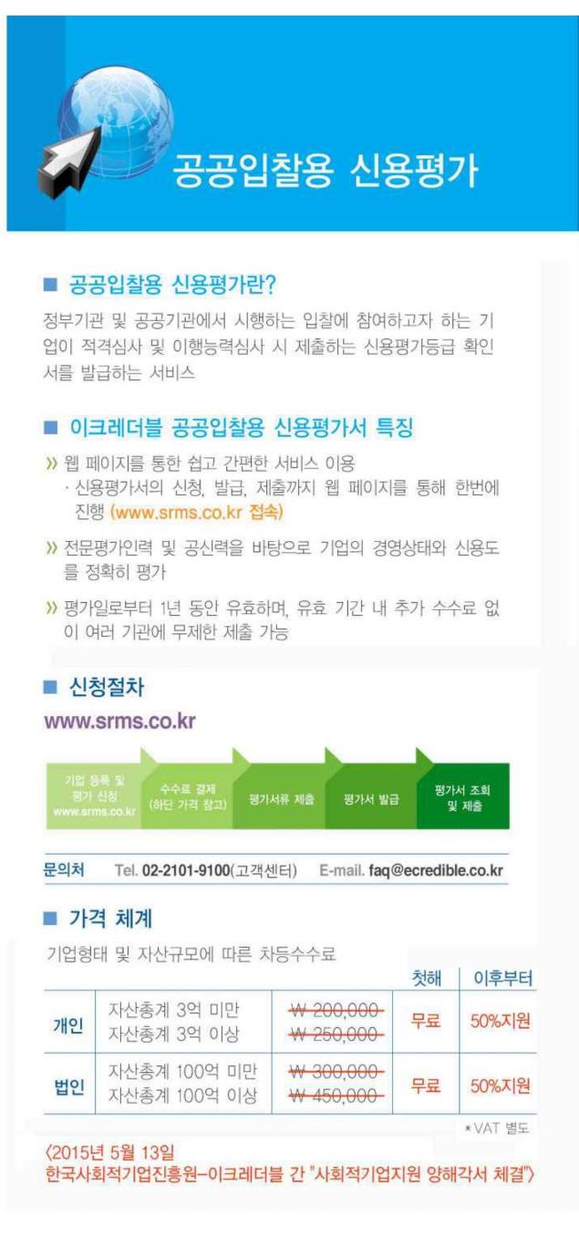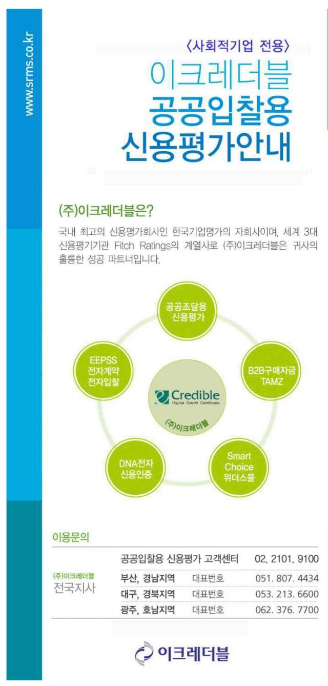 | 제목 | [사회적기업진흥원] 사회적기업 공공입찰용 신용평가 무상지원 안내 - 이크레더블 |