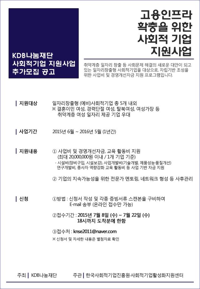 『고용인프라 확충을 위한 사회적기업 지원사업』 대상을 추가 모집합니다.
