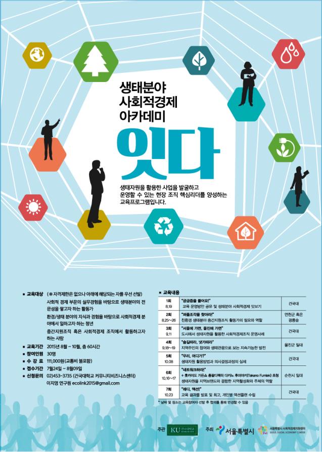 -신청 및 문의: 02)453-3735, ecolink2015@gmail.com