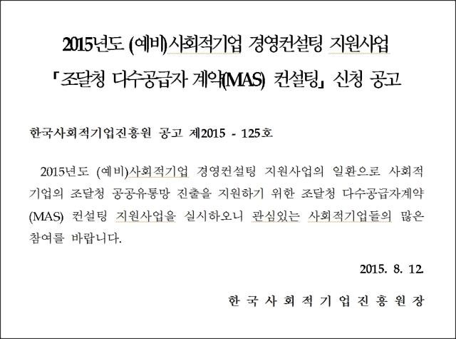 | 제목 | 조달청 다수공급자 계약(MAS) 컨설팅 신청 공고 |